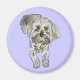 Cette illustration graphique présente un mignon et moelleux Maltipoo ou Maltais et Poodle marié chiot aux yeux bruns brillants.