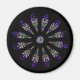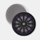 Un joli motif en vitrail orne cet aimant dans les couleurs dominantes du violet, du bleu, du jaune et du noir. Douze plumes abstraites encerclent un masque central pour former un modèle de mandala spirituel avec une sensibilité amérindienne.