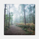Cette photo présente un sentier traversant un bois brun foncé à Norfolk, au Royaume-Uni.