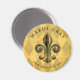 Cet aimant présente un symbole de fleur de lis noir sur un motif arlequin de couleur or et le texte "Mardi Gras" "La Nouvelle Orléans 20xx". Personnalisez l'emplacement et l'année avec vos propres détails.