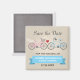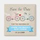 Les mariages de bicyclettes sont une nouvelle tendance amusante dans les mariages thématiques. Sur ce faux arrière - plan de lin sauver l'aimant de date, deux bicyclettes se rencontrent et créer un petit coeur pour symboliser le couple marié à être. Le vélo de la mariée a un voile mariage sur le siège et un bouquet dans le panier. La moto du marié a une cravate à arc non attachée enroulée autour du guidon. Les noms du couple se détachent sur une bannière bleu ciel ci-dessous. Idéal pour un vélo ou un mariage extérieur. Disponible en couleurs alternatives avec une option vélo tandem. com.