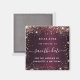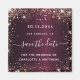Une couleur arrière - plan bordeaux. Décoré avec de la poussière de parties scintillant en faux or rose. Personnalisez et ajoutez une date, un lieu et vos noms. Save the Date est écrit avec un script de style manuel moderne avec des swashes.
