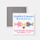 Avez-vous un mariage tropical de destination ou peut-être vous mariez-vous à un aquarium ? Ce mignon aimant de poisson personnalisé fera une faveur de mariage parfaite pour vos invités, ou juste commander quelques-uns pour souvenirs pour vous-même et votre fête de mariée! Personnalisez avec les noms, la date et l'emplacement de la plage de votre choix. La police et la couleur du texte, ainsi que la couleur arrière - plan de l'aimant, peuvent être modifiées selon vos préférences.