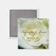 Aimant mariage rose blanche, personnalisé avec vos noms et votre date.