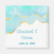 Un aimant de sauvegarde de mariage avec un design serein estival. Image aquarelle verte turquoise / aqua avec une bordure dorée fausse ondulée. Élégant et charmant.