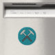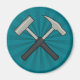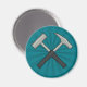 Cet aimant de réfrigérateur géologique est muni d'une paire de marteaux rocheux croisés sur un arrière - plan de coup de soleil. Ci-dessous, c'est un endroit pour votre nom ou message court en texte blanc.