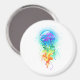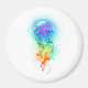 Grande méduse irisée, artistiquement dessinée, brillante, avec de longues tentacules sur le blanc, peinte sur l'arrière - plan multicolore. Méduse arc-en-ciel.