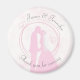 Un "merci d'être venu" personnalisé avec des noms magnet de mariage d'un beau mariage romantique design des silhouettes encadrées de la mariée et du marié qui s'embrassent sur un fond rose rêveux. Le texte en haut et en bas peut être personnalisé. (Veuillez commencer à taper où se trouve le texte original en haut pour maintenir le point de départ du texte sur l'aimant.) Joyeux mariage =)