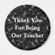 Cet aimant pour l'appréciation des enseignants présente un arrière - plan marbré en noir et blanc. "Merci pour être notre professeur" est présenté dans le centre en blanc et peut être customisé pour répondre à vos besoins. Il s'agit d'un aimant peu coûteux qui fait un cadeau d'appréciation unique pour votre enseignant, femme ou homme, pendant la semaine d'appréciation de l'enseignant ou la fin de l'année.