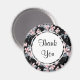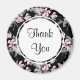 Un aimant de remerciement avec un élégant motif fait avec une aquarelle illustration de fleurs roses avec feuilles et tiges bleu-gris. Un cercle blanc superposé avec merci écrit à l'intérieur.