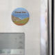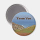Faites un geste de remerciement bon marché avec cet aimant frigo avec une photo de paysage qui capture les collines et les dunes de sable avec les vagues et l'horizon bleu au loin. Les dunes proches sont couvertes de plantes côtiers verts. L'océan affiche de belles nuances de bleu. "Merci" peut être customisé rapidement et facilement si vous le désirez.