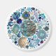 Aimant rond avec une image de belles pierres précieuses, coquillages et une sirène d'argent sur blanc. Voir l'ensemble de la collection Under Sea Magnet dans les TOUCHES SPÉCIALES | Section Favoris.
