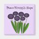 Un design floral mauve avec des fleurs violettes aux tiges vertes et feuillage. Un proverbe d'espoir de "paix". Les mots peuvent être changés si vous le souhaitez.