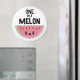 Aimant kawaii mignon avec une adorable tranche de pastèque aux yeux clairs et un doux sourire. Au-dessus de la tranche de melon se trouvent les mots One In A Melon en lettres noires.