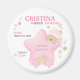 Adorable ours en Teddy avec un casquette endormi sur une étoile rose. Des statistiques de naissance de petite fille mignonnes et douces avec des étoiles et des points en rose, beige et crème. Personnalisez en changeant le texte ou la personnaliser pour ajouter votre propre touche.