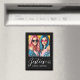 Cet aimant photo moderne pour les meilleurs amis dispose d'une photo que vous pouvez changer à votre propre sur un simple arrière - plan noir avec le Titre Bestie et vos noms à personnaliser en écriture blanche. Images d'espace réservé générées avec AI.