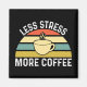 Toute personne qui aime le café et connaît l'effet qu'il a sur son niveau de stress va adorer ce design de café de style rétro sur des sacs, des tasses, des autocollants, des T-shirts, des coussins, et plus avec une tasse de café vapeur design avec le texte Moins de stress Plus de café!