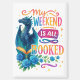 Design coloré et dynamique, avec un dragon avec un livre ouvert et des roses bleus. Le texte coloré dit : "Mon week-end est complet". Ce design est disponible sur une grande variété de produits.