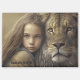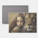 Jeune fille rêvant d'être avec son animal favori, le lion.