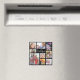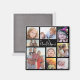 On this black trendy magnet is a collage of eight photos and in the center is an area where you can customize it with a letter and family name making it you own family keepsake magnet.
