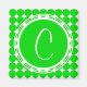 Des points verts dans des quartiers rapprochés créent un motif secondaire d'étoiles blanches. Un grand cercle vert est entouré de lignes blanches, tandis qu'un seul cercle blanc initial grace le centre.
