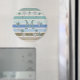 Ajoutez une touche de plage à votre réfrigérateur avec cet aimant en rayures bleues et sablonneuses et de l'étoile de mer accentuée avec votre monogramme. Voir plus dans cette collection de design "Beach Stripes and Starfish" à Camp_and_Cottage sur Zazzle.