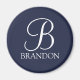 Aimant Monogramme et nom de script personnalisé bleu mari