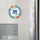 Aimant rayé bleu moderne avec détails floraux et votre initiale.