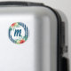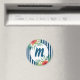 Aimant Monogramme moderne à rayures et fleurs bleues