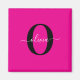 Aimant Monogramme personnalisé Nom du script rose noir bl
