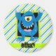 Cool, monstre d'enfant coloré, cyclops bleus avec cornes vertes, vert néon, design monstre sur Neon Green, motif White Stripes. Un cadeau parfait pour bébé, tout-petits, enfants, enfants, ados ou adultes ! Personnalisez le modèle de conception en ajoutant le nom ou le texte personnalisé d'un enfant. Visitez notre magasin, Birthday Party House, pour plus de produits pour garçons et filles personnalisables!