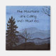 Une aquarelle d'une vue de montagne du soir orne cet aimant "Les montagnes sont en train de crier et je dois y aller" ! Customisez en changeant le texte, si vous le souhaitez !