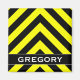 Ce modèle magnétique est composé d'un motif en chevron noir et jaune. Il porte également un nom personnalisé.