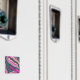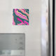 Porte rose, violet et or sur motif arrière - plan bleu.