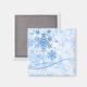 Cette impression de flocon de neige présente une scène hivernale scintillante et bleutée.