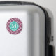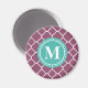 Un motif arrière - plan en treillis marocain tendance, élégant, girly prune violet quatrefoil avec un cadre étiquette bleu et blanc aqua pour votre lettre initiale monogramme personnalisée.