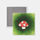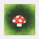 A cute illustration of a spotted red mushroom. Background is a green weathered texture, the color reminiscent of a lush green forest where you might find these adorable little fungi. The toadstool mushroom is a magical mystical symbole which can help add whimsy and mystery to your home and your life.