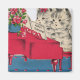 Illustration vintage de deux chatons assis à un piano rose avec une partition qui dit "anniversaire heureux"
