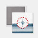 Design nautique avec décoration de boussole en forme ronde sur bleu et blanc rayé arrière - plan