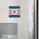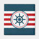 Design nautique avec décoration de voilier en forme ronde avec étoiles sur rouge, bleu et blanc rayé arrière - plan