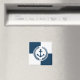Nautical themed design with anchor and laurel wreath decoration over blue and white geometric background