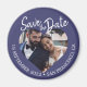 Aimant Navy Blue Photo Modern Script Save the Date