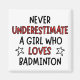 Ne sous-estimez jamais une fille qui aime le badminton. Pour la fille ou la dame qui aime jouer au badminton - pour adultes, enfants et adolescents. Un cadeau amusant pour Noël, les anniversaires, la fête des mères, pour vous-même, "juste parce que"