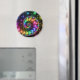 Cet aimant présente ma spirale fractale appelée "Nebula arc-en-ciel" avec des couleurs rouge, orange, jaune, vert, bleu, violet et rose avec un arrière - plan noir.