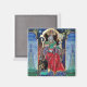 Coloré, vibrant, peinture contemporaine en or, bleu, rouge, vert, couleurs marron. Un mystérieux sorcier hypnotique avec d'élégants costumes de velours rouge tenant une sphère magique assise sur un trône gothique avec des gargouilles et une chouette. Ambient est surréaliste, fantastique, alchimique où vous voyez un bouchon boire d'une tasse, un moine tempéré volant sur une grenouille, bulles transparentes, paysages d'imaginaire avec feu d'enfer, ciel bleu cosmique avec étoiles, montagnes du ciel, arbres.Egg Tempera sur panneau en bois avec feuille d'or. 1989, Miniature Fabriquée avec des techniques picturales de 1300 par Alessandro Lumini (c) C'est aussi un beau design d'imaginaire pour Noël, Fête, Anniversaire, Jour de la Saint-Sylvestre, Mardi Gras et salutations carnavales.