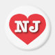 Cet aimant présente un coeur rouge vif contenant les lettres coques en haut et en blanc, NJ, l'abréviation officielle du New Jersey, Garden State.