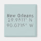 Latitude and longitude map coordinates for the city of New Orleans inn modern industrial style font