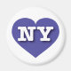 Cet aimant est doté d'un coeur bleu vif contenant les lettres coques supérieures et audacieuses NY, l'abréviation officielle de New York, l'état de l'empire.