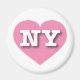 Cet aimant est doté d'un coeur rose vif contenant les lettres coques supérieures et audacieuses NY, l'abréviation officielle de New York, l'état de l'empire.