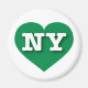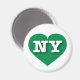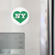 This magnet features a vibrant green heart containing the bold, white, upper case letters NY, the official abbreviation for New York, the empire state.